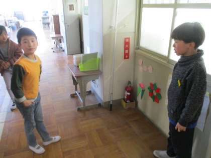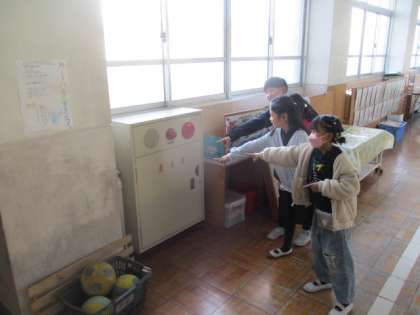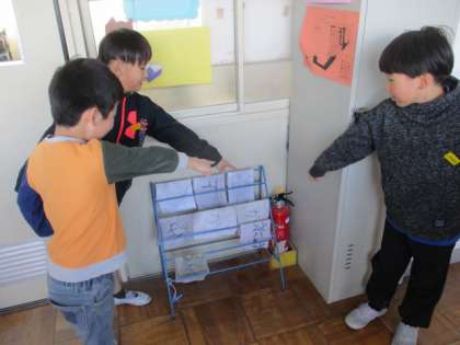 社会科「火事をふせぐ」の学習で、校内のどこにどんな消防についての設備があるのかを探しました。