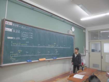 数直線を見て、「6700」や「9900」がどこにあるかを考えました。