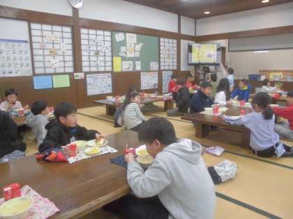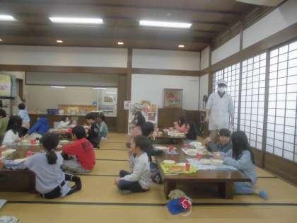 いつもと違うところで給食を食べ、子どもたちはとても素敵な表情をしていました。