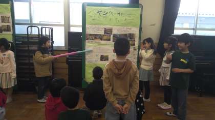 保護者の方やお店の方も招いて、町探検で学習したことを発表しました。