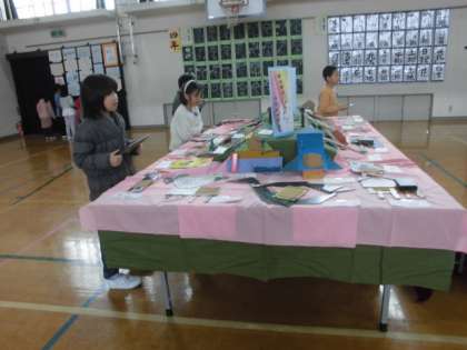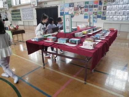 1年生から6年生まで全校の作品が展示され、子どもたちはとても熱心に作品を鑑賞していました。