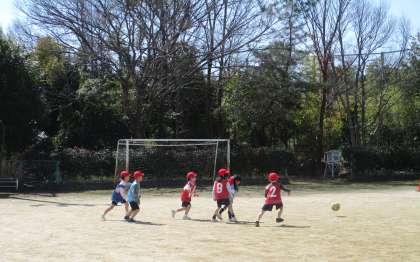 今日は、チーム対抗戦でゲームをしました。今までは、チーム内でパスを回してシュートをしていましたが相手がいると思うようにパスができずもどかしく感じている子もいました。