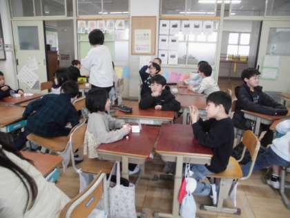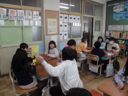 「無人島に持っていきたいもの」「一億円あったら・・・」など、テーマについて話をしたり、じっくりと友だちの話を聞いたりする姿が見られました。