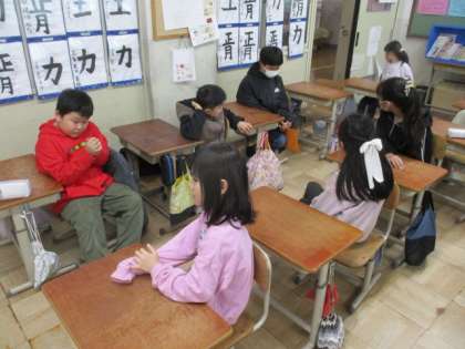 3月12日(水)に今年度最後の「たてわりロング昼休み」がありました。この日は、それぞれの縦割りの教室でグループみんなで6年生との別れを惜しみながら遊んだりゲームをしたりしました。1年生から5年生までが6年生にメッセージを書いたカードも6年生にプレゼントしました。