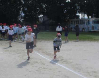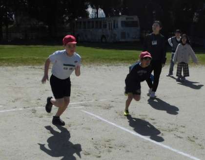 5・6年生の体育では、50メートル走のタイムを計りました。昨年よりも速く走ろうと、ゴールまで力いっぱい走る姿が見られました。