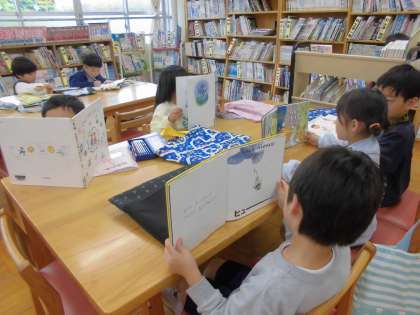 初めて図書室に行きました。班ごとに座って本を読みました。最後に本を借りました。「借ります。」と図書館司書の先生に言えていました。