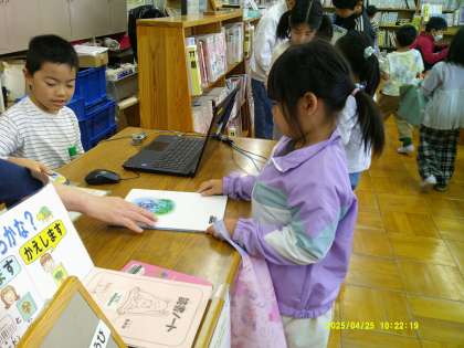 「本を返します。」と図書委員の人に言って、本を返してから本を借りている人もいました。