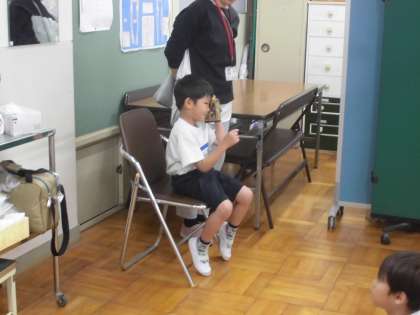 本日、身体計測を行いました。身長・体重・視力を測定しました。