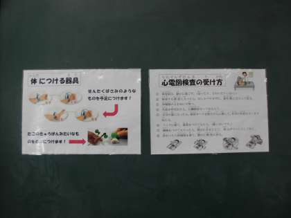 心電図検査を行いました。初めての検査にみんなドキドキしていました。検査が終わると「つめたかった。」「全然痛くなかった!」「気持ちよかった。」と言っていました。