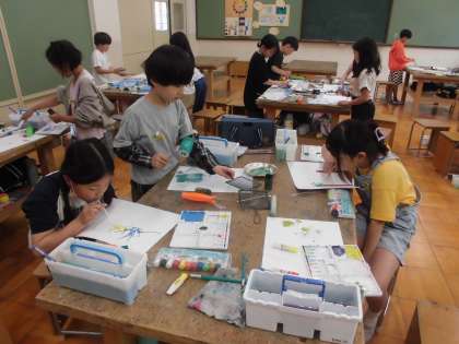 色を組み合わせたり、模様の上に別の模様を重ねてみたりと楽しんで学習を進めていました。