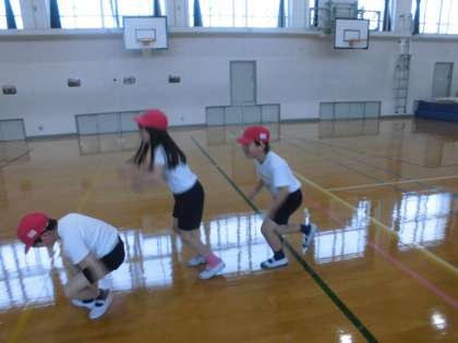 「まねっこウォーキング」、「フラフープ」などペアやグループで協力しながら進めました。