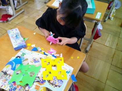 1年生 図工 ちょきちょきかざり 1組編
