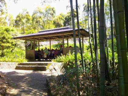 東屋では、地域の方の尺八の演奏を聞いている人たちもいました。子どもたちの知っている曲を演奏してくださったので、休憩中に尺八のよい音色を聞くこともできました。