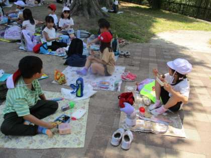 1年生と一緒に竹林公園へ遠足に行きました。グループごとにウォークラリーをした後、お弁当を食べました。仲良く遊ぶこともできました。