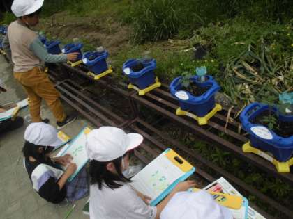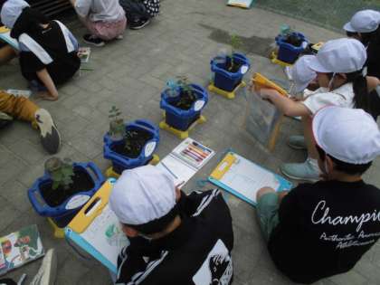 国語で学習した「〜みたいだ」という表現を使って、「葉っぱがハートみたいでした。」と観察カードに書いている人もいました。
