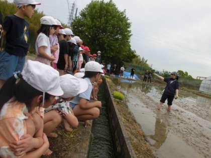 初めて田植えをした人も多く、田んぼの土の感触に驚きながらも、懸命に苗を植えていました。