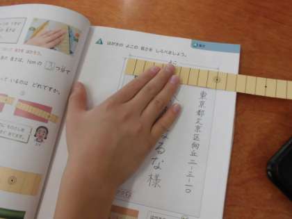 長さの学習では、紙のものさしを使って、長さをはかる方法を学習しました。