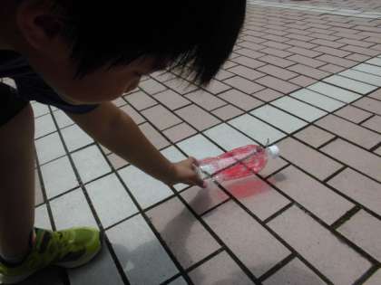 どんな色がきれいにうつるのかを試したり、色をつけた容器を重ねてみたり、友だちの容器と重ねてみたり、向きを変えてみたり。