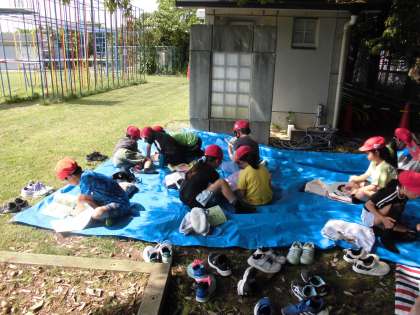子どもたちはとても楽しみにしており、いつもと違う本を晴天の中楽しんでいました。