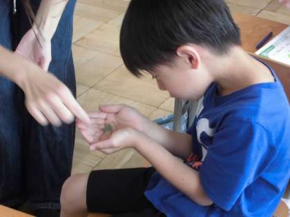 今日の道徳では、「いのち」について考えました。モンシロチョウの赤ちゃんを観察し、小さな「いのち」にふれることができました。