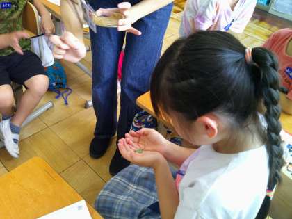 最後にもんしろちょうの卵を見せてもらって、大事そうに手に持つ子どもたちがとても素敵でした。