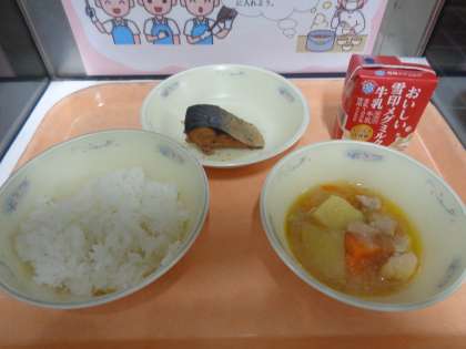 今日の給食は、「牛乳・ごはん・さばの生姜煮・鶏肉と野菜の煮つけ」でした。