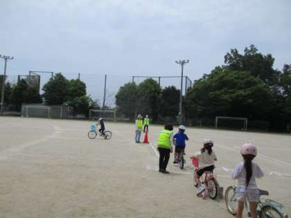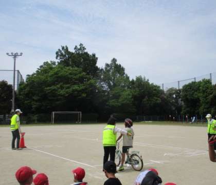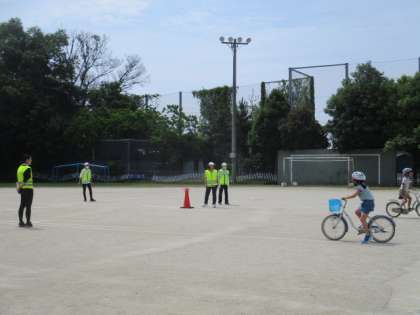 2年生・3年生の自転車教室がありました。自転車に乗って公道に出れば、子どもも交通社会の一員として、ルールに即した安全な運転を求められます。