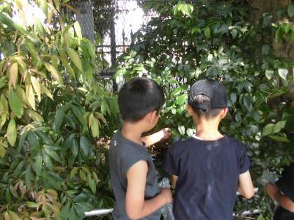 「この葉、かわいい形じゃない?」「この葉は、さわったらフワフワしてる。」「この色、きれいじゃない?」と、たくさんの発見をしながら葉を集めていました。