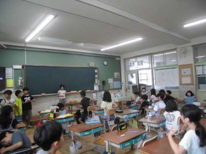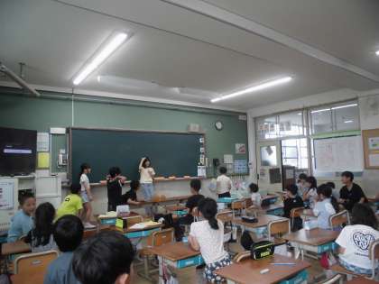 水曜の中間休みは、遊び係さん企画の「みんな遊び」です。今日は、教室で「ジェスチャーゲーム」でした。