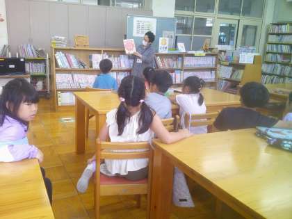 1年生 図書館で 読み聞かせ