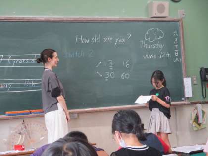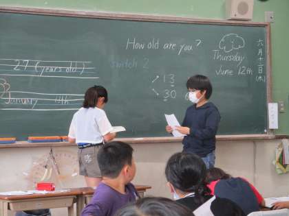 先日、ALTの先生のエマ先生と「Happy Birthday」の学習をしました。それぞれが友達のために書いたバースデーカードを使って、英語で誕生日を聞きあったり、ほしいものを聞きあったりしました。
