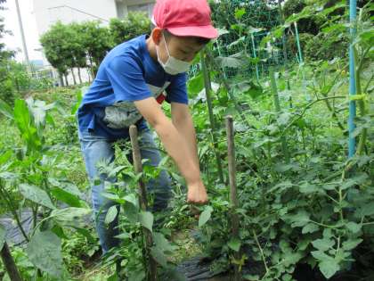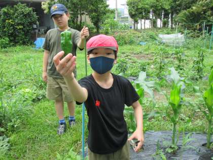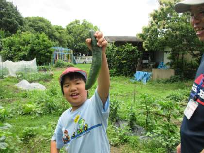 雨のおかげで野菜が収穫できました。金曜日には小さかったキュウリが大キュウリに。ピーマンもできていました。もう少しするとトマトもどんどんできそうです。これからの収穫が楽しみです。