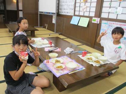 そのあとは、いろりの間でみんなで仲良く給食を食べました。