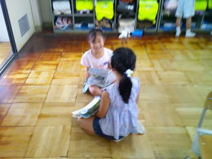 「どんなどうぶつがみたいですか?」という質問に二人組で答える交流をしました。「どうしてかというと、ジャンプしているところをみたいからです。」などわけを話すことができました。
