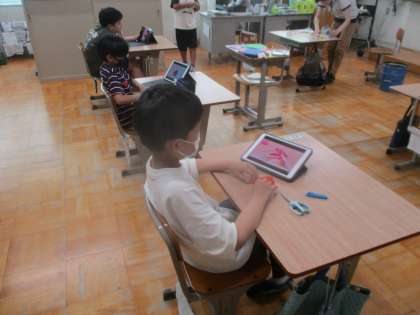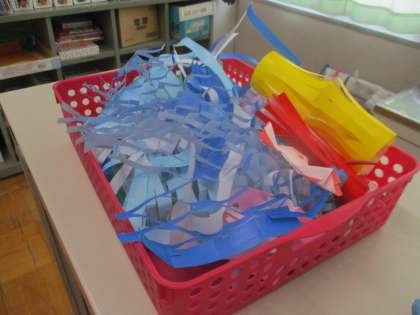 3組では、笹につける飾りを折り紙で作っています。星や天の川、夏をイメージするものなど、いろいろ工夫しながら楽しそうです。