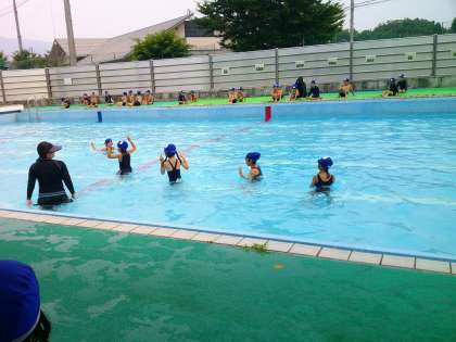 みずあそびも5回目。どんどん活動に慣れてきました。顔をつけられなかった児童は、頭までつけられるようになり、足が離せなかった児童は、浮かぶことができるようになってきました。