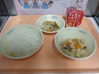 今日の給食は「ごはん,牛乳,高野どうふと野菜の炊き合わせ,ごま酢煮」でした。夏休みが終わり久々の給食でしたが,準備もスムーズで食事中もしっかり食べていました。2学期も色んな献立を楽しんでもらえたらいいなと思います。