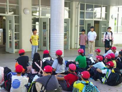 5年生が花背山の家宿泊学習に出発しました。出発式では、係の人から「3日間、元気に楽しんで過ごしてきます!」と力強い言葉がありました。素敵な思い出を作ってくださいね。