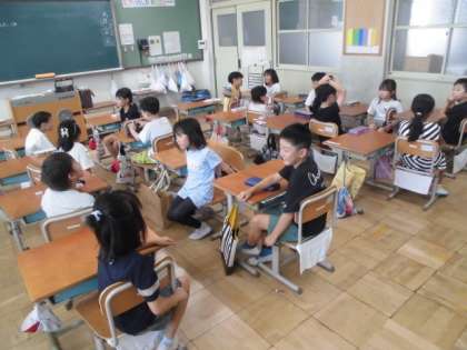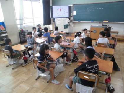 新しい席になり、新しいペアの友だちと、夏休みの思い出をテーマにミニトークをしました。