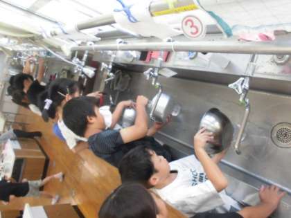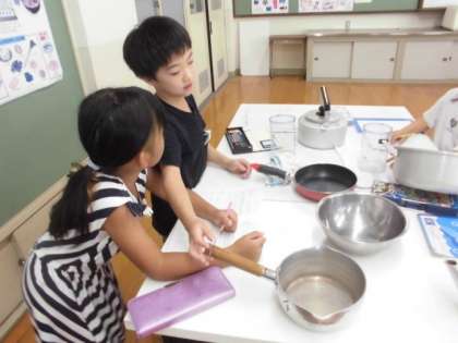 1Lづくりのあとは、いろいろな容器にどれだけ水が入るのかを調べてみました。
