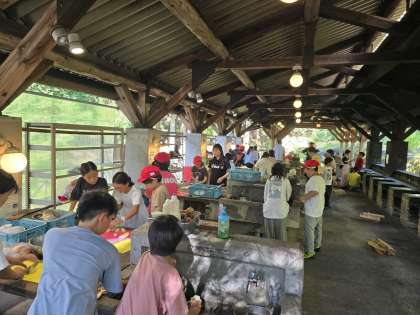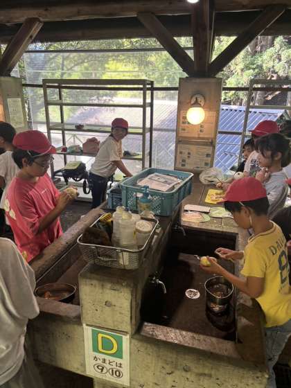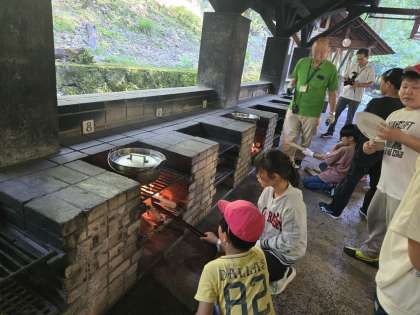 どうやったら上手く火がつくかな…かまど担当も奮闘しています!
