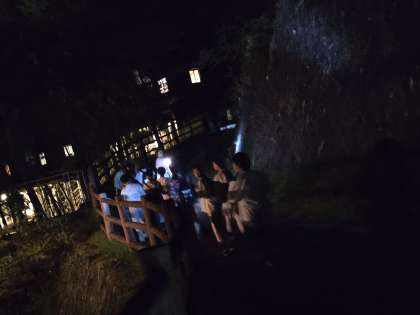 いよいよナイトハイクへ出かけます。日も落ち、昼間散策していた景色とは違って、ワクワクドキドキ!!足元に気をつけながら、出発です。