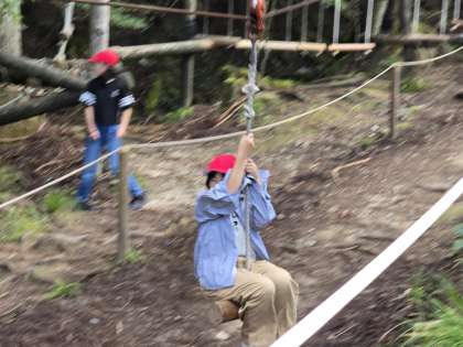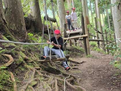 友達と声をかけあいながら、いろんなアスレチックに挑戦しています。みんなとっても楽しそうです♪