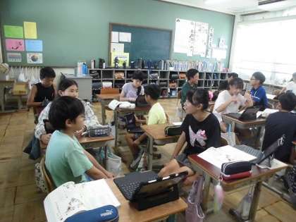 友達と伝え合うことで自分の考えを広げるために、「いちばん大事なもの」というテーマで対話の練習をしました。「家族」や「習い事」、「ポジティブシンキング」など、自分が大事にしているものやこと、考え方について、友達と伝え合っていました。