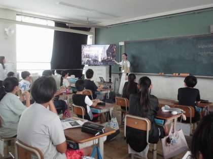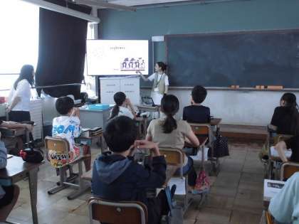 エマ先生がどのように夏休みを過ごしたかについて教えていただき、とても楽しそうに聞いていました。