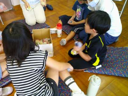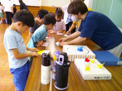 今日は楽しみにしていたなぬか会でした。ゴム鉄砲、折り紙、お手玉、けん玉、あやとりの遊びを順番に楽しみました。地域の方とにこやかに遊んでいる姿がとてもかわいかったです。