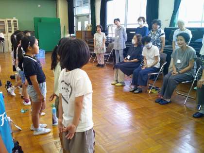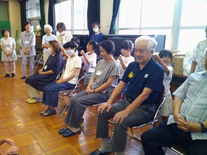 はじめのことばとおわりのことばも代表の人がはきはき言えました。地域の方と一緒に「海」の歌も元気に歌ってくれました。最後にお礼をこめて地域の方の肩をたたきました。えんぴつたてのプレゼントをもらってとてもうれしそうでした。