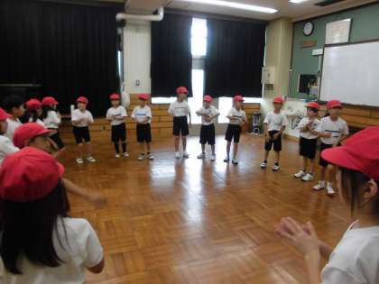 体育の時間に、フォークダンスをしました。ロシアの「タタロチカ」を覚えて踊りました。「ヤクシー!」と大きな声で言いながら、笑顔でダンスをしていました。