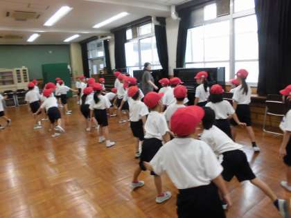 体育の時間に、運動会のダンスの練習を行いました。新しい振付けをすぐに覚えて、放課後も楽しく踊っていました。