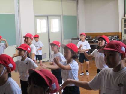 運動会の練習が始まっています。今、テレビのアニメ「名探偵コナン」で流れているダンスの練習に励んでいます。